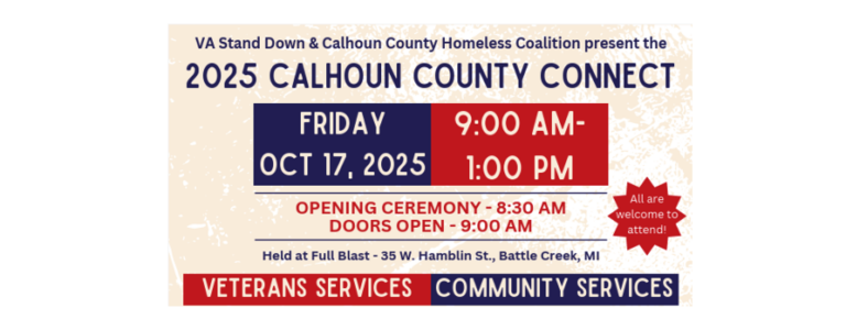 The 2025 Project Connect Health fair and VA Stand Down will happen on October 17, 2025 at Full Blast Recreation Center in downtown Battle Creek. The event, a partnership between the City of Battle Creek, Calhoun County Homeless Coalition and the Veteran's Administration, brings together nonprofits, government agencies and local churches. The groups provide essential services to those experiencing homelessness, housing instability or other challenges.